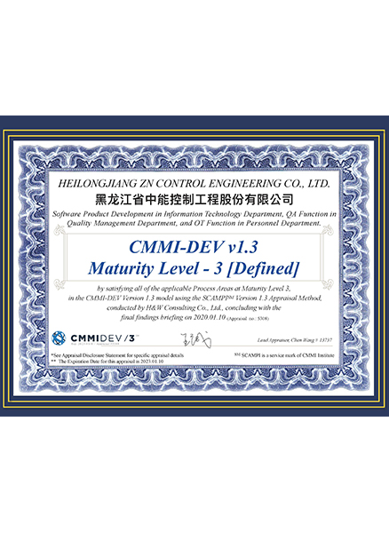 2020年獲得CMMI3級軟件開發(fā)認(rèn)證證書